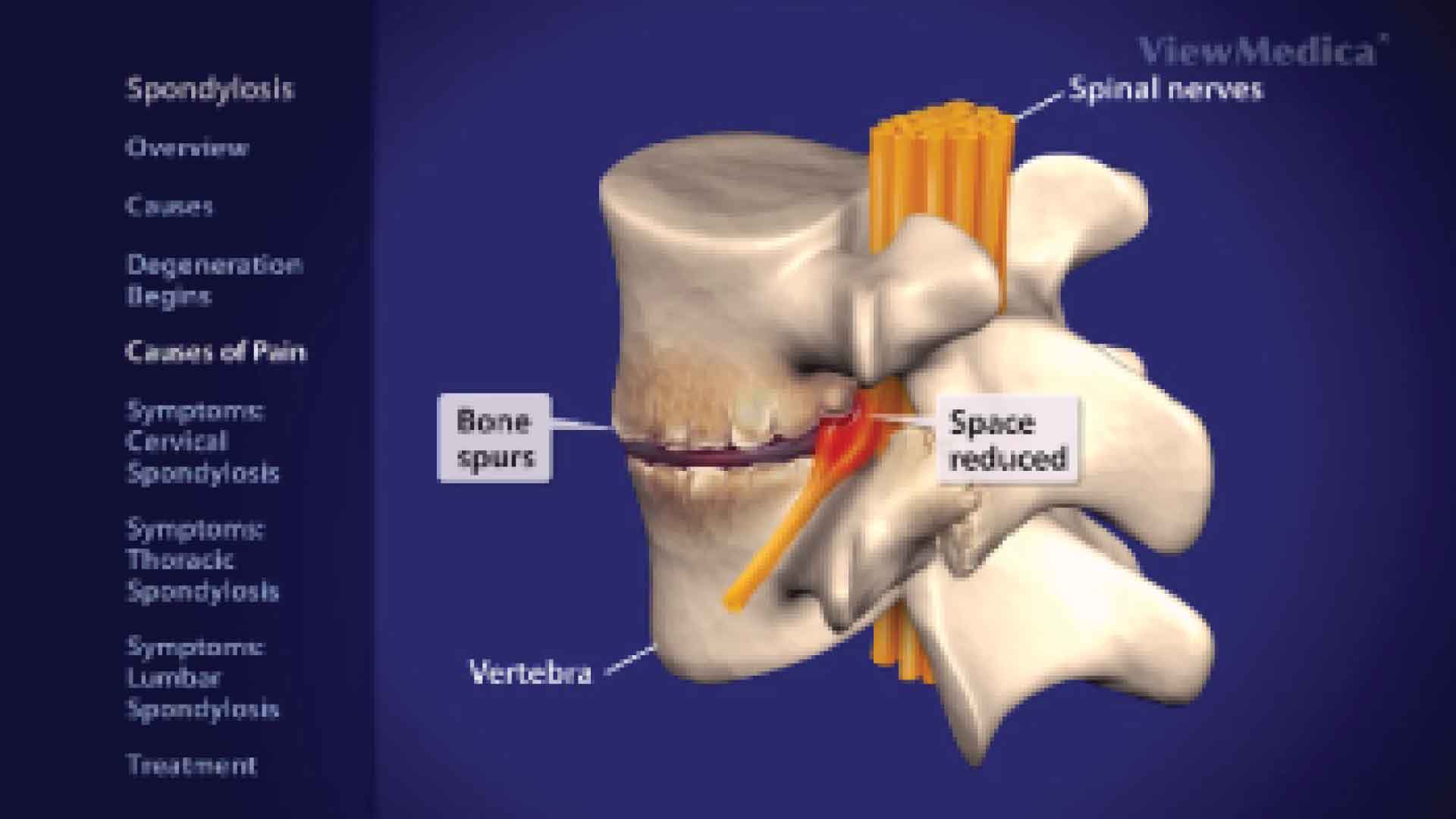 Radiating pain, or referred pain, is often caused be irritation at or near the spinal nerves which manifests as a pain which spreads peripherally.
