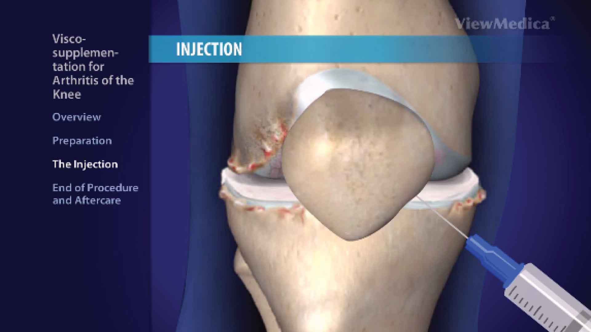 Injection of viscoelastic supplements can be performed to reduce pain and improve function into knee joints.